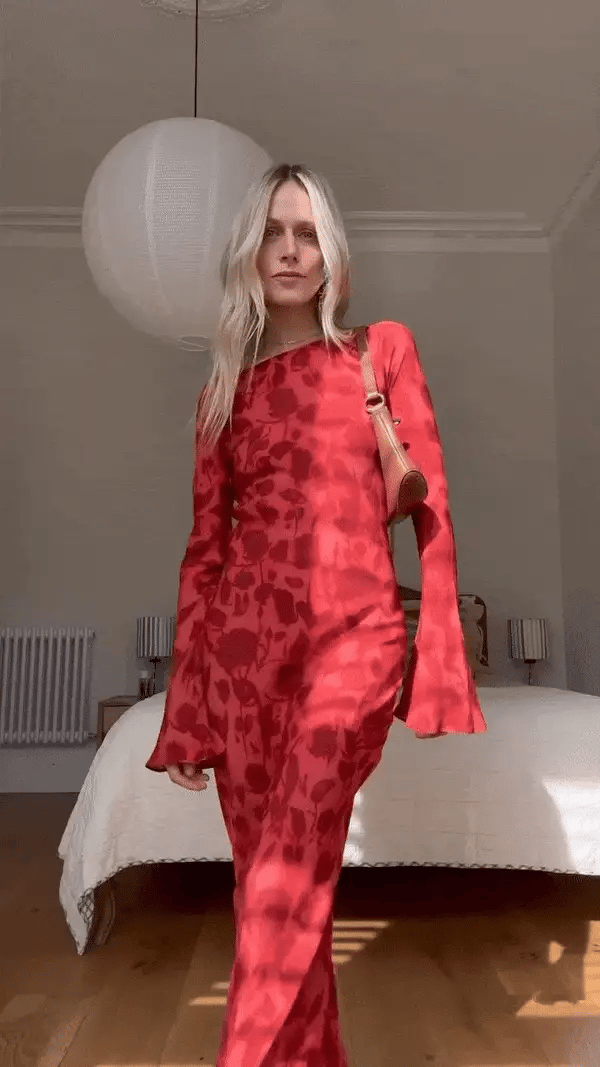 Crafted with a stunning rose print, boat cut-out, and silk fabric, it exudes timeless charm.